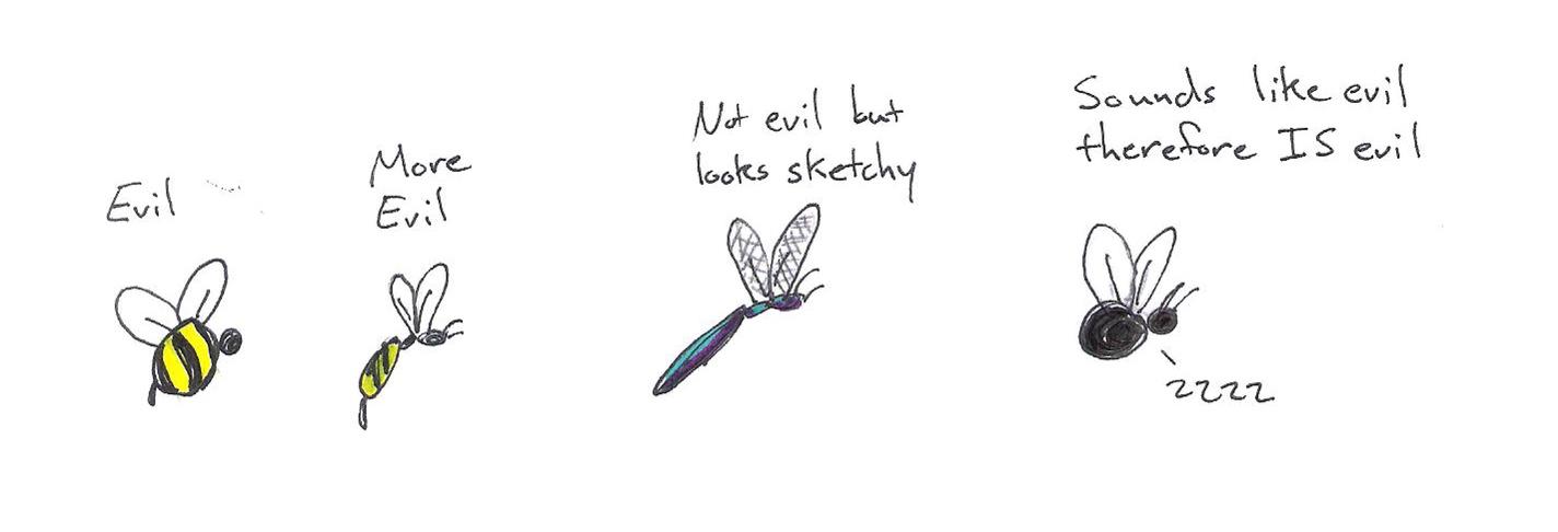 At some point when I was very little I, according to my family as I don’t remember this, saw my grandmother get stung by a bee and her reaction was a bit extreme. My family, and by association I, believe that I this is what caused me to have an extreme fear of bees. I should also note that when I say bees, I also mean wasps, yellow jackets, a dragonfly seen at the wrong angle and overly buzzy flies.