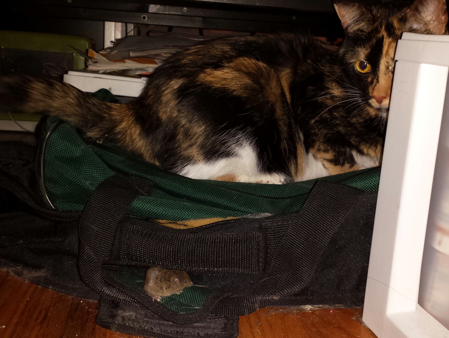The cat did not help. She was aware of the mouse, sure. Even Izzy would sometimes frantically scratch under the stove, knowing that someone who shouldn’t be there, was there.