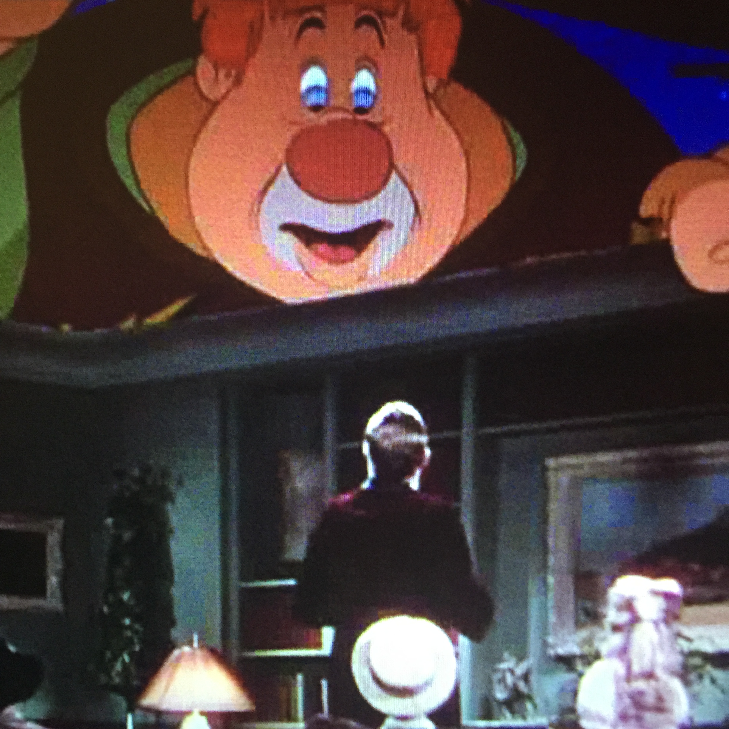 Back in the real world, Mortimer is upset by the giant’s death, when the Giant literally raises the roof and peaks in, showing us that he is still alive and searching for Mickey. If only Willy the Whale in our last film had had an equally non-depressing death.