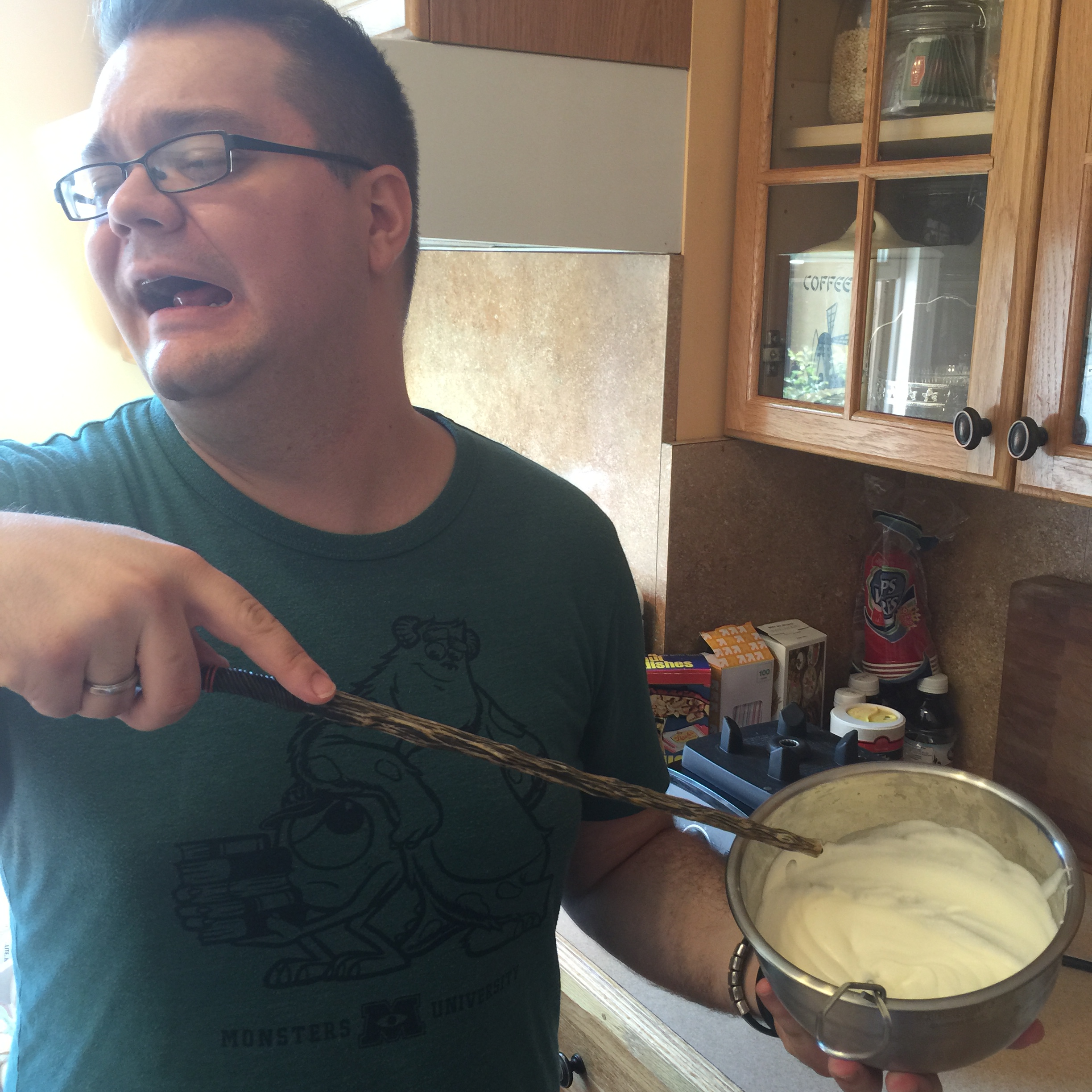 It was about this time that Carl mentioned his stomach was not feeling all that well but I reassured him that we only had one recipe left to go and that we were going to be fine. After all, who doesn’t feel a little rough after ingesting that much ice cream, heavy cream, sugar and butter. Feeling a little less awesome, we went for our third and final recipe.