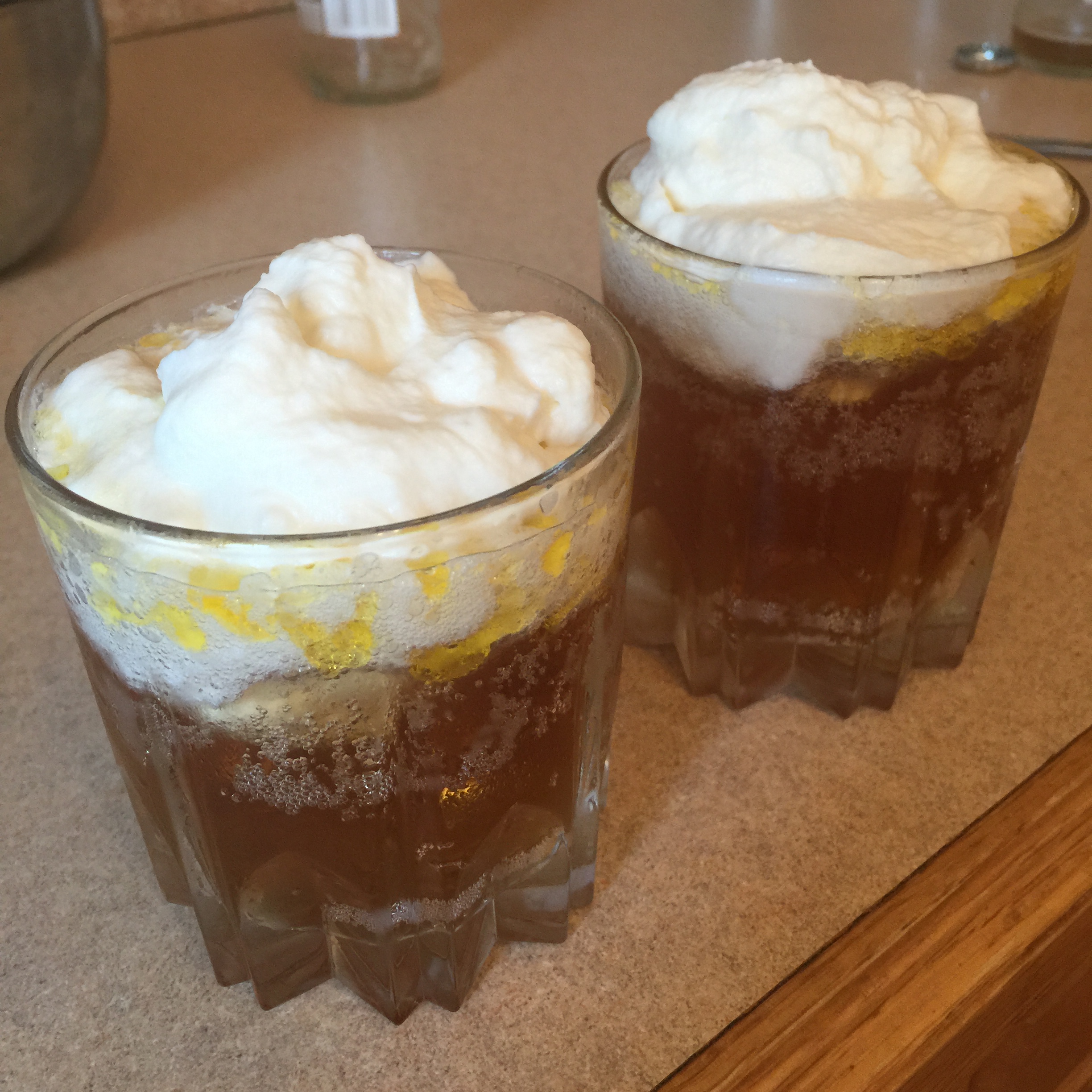 First and foremost, this one is delicious. I mean, it better be as it has almost a whole stick of butter, a bunch of sugar and rum extract. As you pour the mixture into the cream soda, it creates its own frothy foam which looks amazing and tastes awesome. It still doesn’t quite have the look of the one at the park but the flavors here are more complex and we could definitely tell that we were getting closer to success.