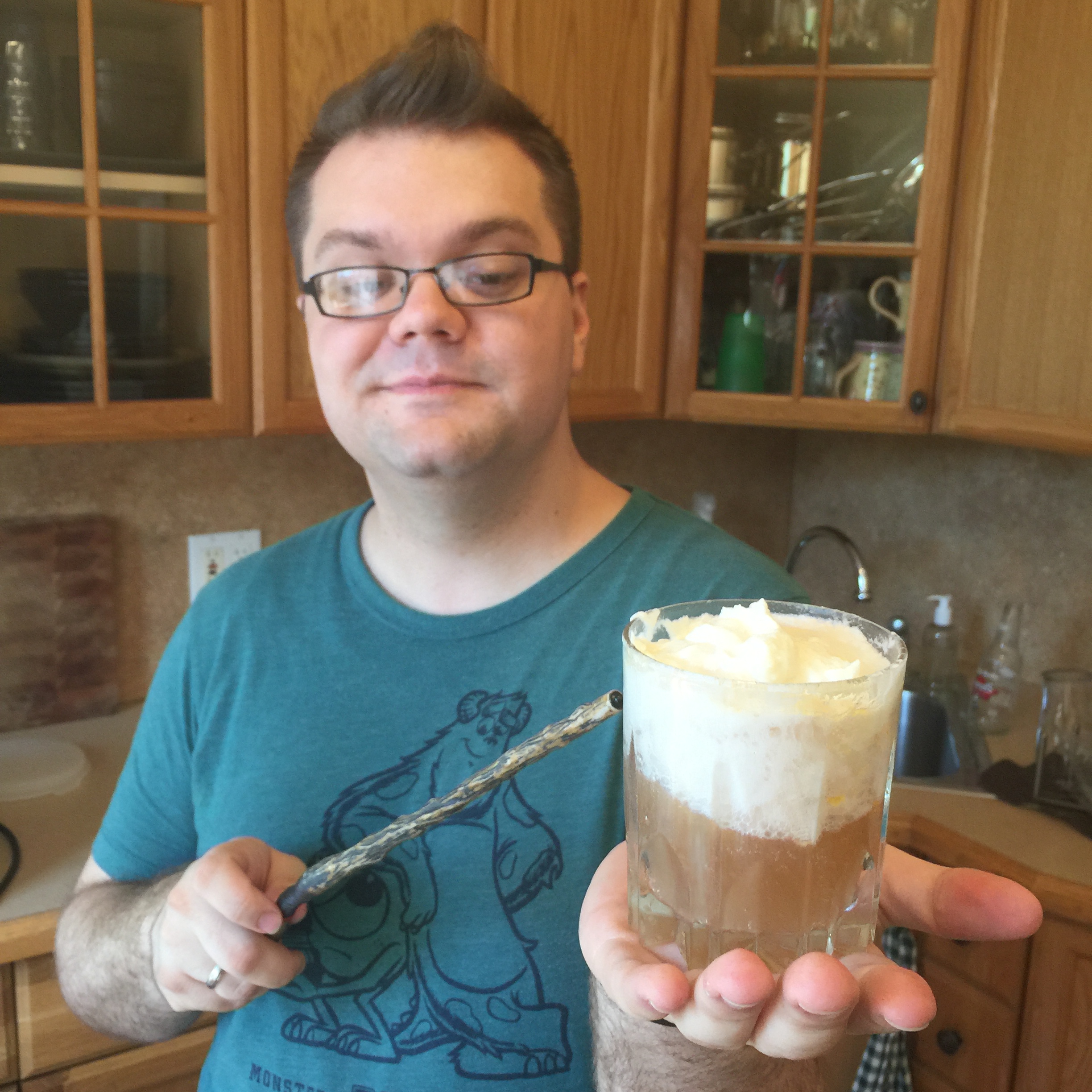 3) Spoon a generous portion of foam on top of each glass of butterbeer, mixing gently, if desired (or spoon the foam into the bottom of the glass and pour the butterbeer over the top). Serve immediately.