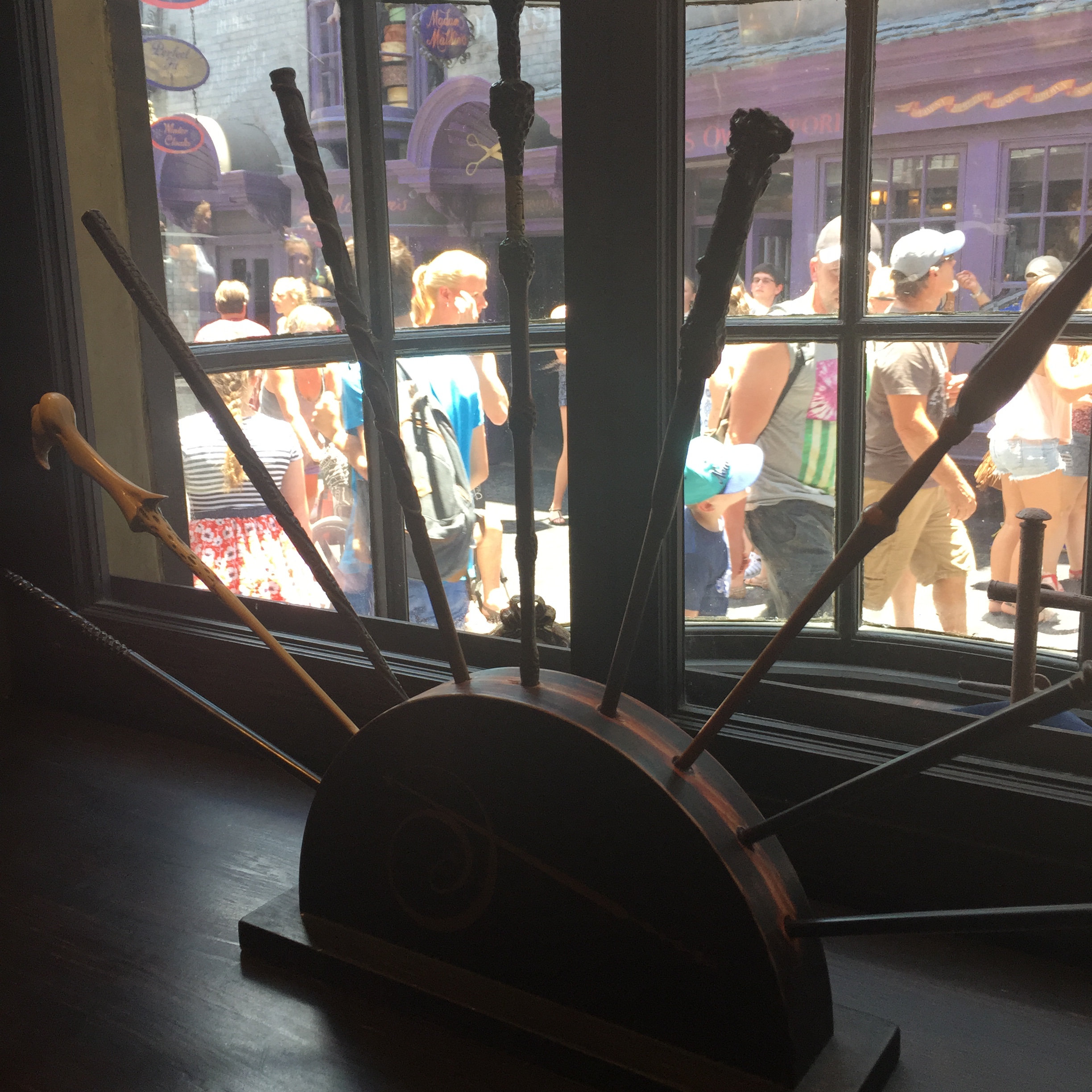 Remember that there are two sides of the park, Universal Orlando houses Diagon Alley, while Islands of Adventure is home to Hogsmeade Village. In Hogsmeade, you can actually watch a demonstration in which you see just how a wand chooses its owner and one lucky visitor per 25 who get to watch will get to be part of the demonstration. This is not done in Diagon Alley, thus the wait time to get into the shop at Diagon is much MUCH shorter. What really gets you started on wanting a wand though is simply walking into one of these shops.