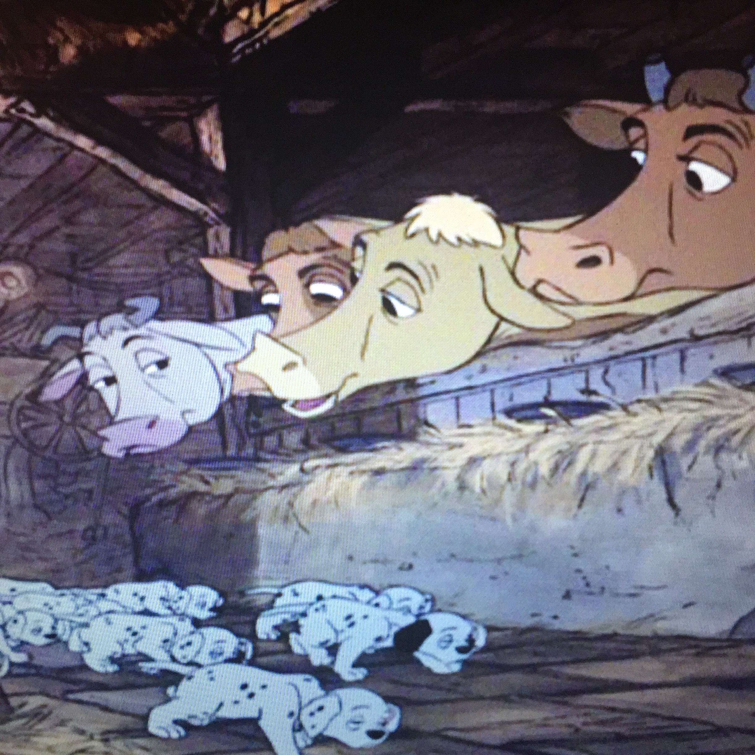 A few things stick out as a little odd in this movie that I just want to touch on. First of all, the Twilight Bark sequence is quite long. It feels like twenty minutes of dogs barking to each other across scenic backgrounds. It’s a neat idea but by today’s standards it definitely drags. Another thing is Rolly. I get it, he’s fat. He eats all the time but he says the line, “Mother I’m hungry” so many times that by the end I actually wanted Cruella to get him just so I didn’t have to hear it again. And also, the puppies feeding off the milk of the cows. It’s natural. I’m sure I’ve watched a few youtube videos with similar themes but for some reason it stuck out as a moment that I turned my head away. Not sure why it made me so squeamish but it did. Also, whatever happened to Cruella? Was speeding off the road into a snow bank really enough to make this mad woman give up on puppy coats? I could have used a “Oh I give up! Puppies aren’t worth the time,” line to wrap it all up.