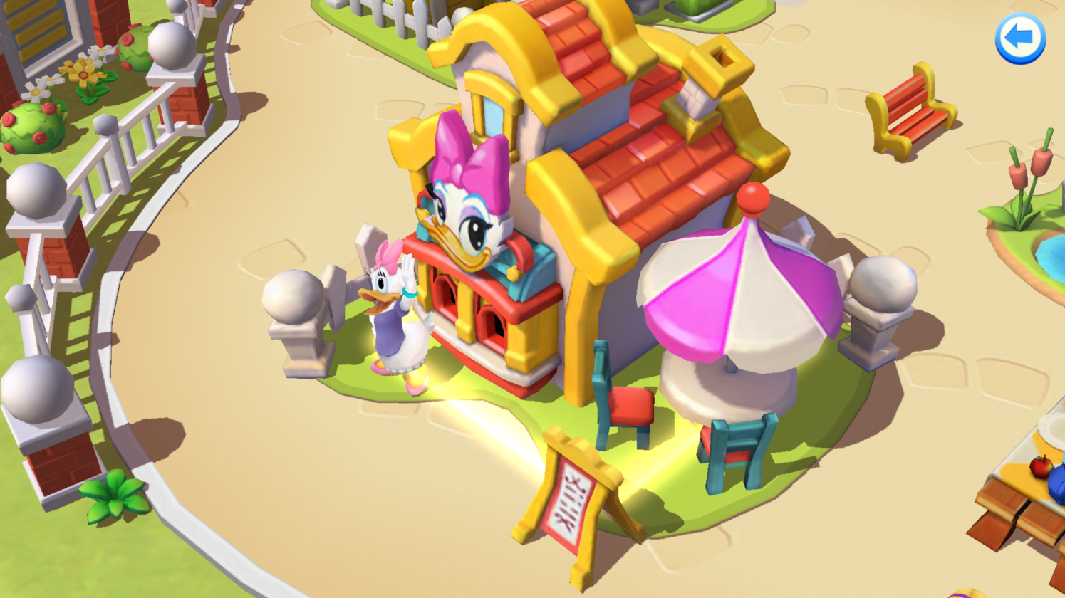 At long last, we arrive in Toon Town, a lovely little village where Mice and Ducks alike are granted homes where they are free to live their lives. Here is a pleasant town, where tea parties are enjoyed often and cakes are left out in the sun to melt. Fishing is the sport of the day and Daisy’s is always serving up a cold drink and some tasty treats. Sadly, Daisy’s restaurant hasn’t been doing so well which has resulted in her walking the streets inviting folks to come buy something for hours on end. Often times, she can be seen outside searching far and wide for any customer who might come in so that she doesn’t have to close down shop.