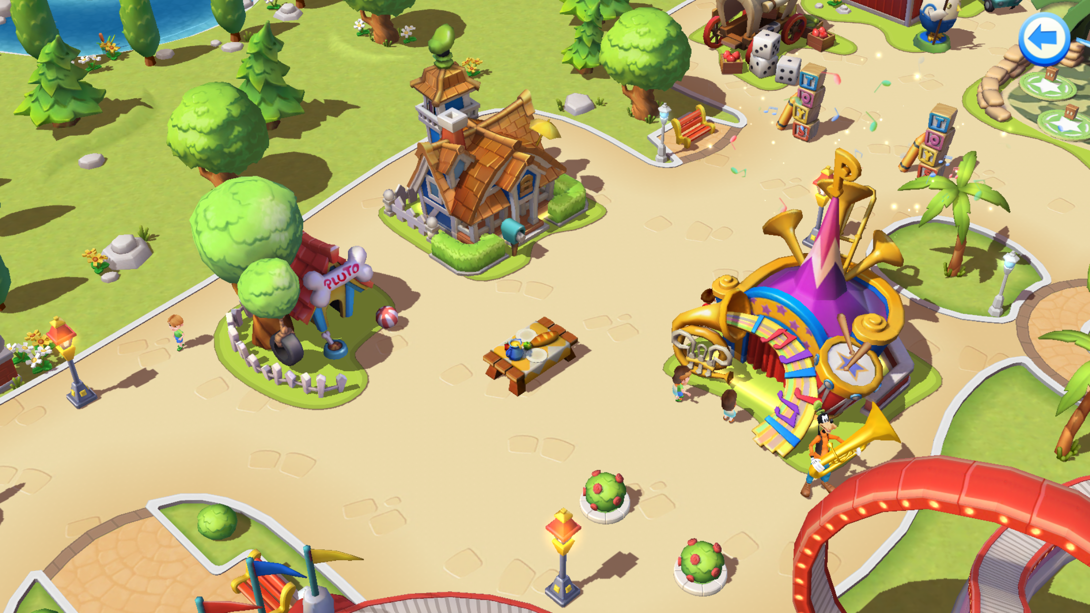 Just up a ways, you’ll find the dogs living a dog eat dog life. Living so close to a normal dog has caused Goofy to lose a bit of his sanity as he questions his existence. He’s found that the best way to counter this is by listening to and playing loud music at all hours of the day to drown out the terrifying thoughts of his own mortality. Pluto is less inclined to hysteria and spends much of his time spinning in circles or taking naps.