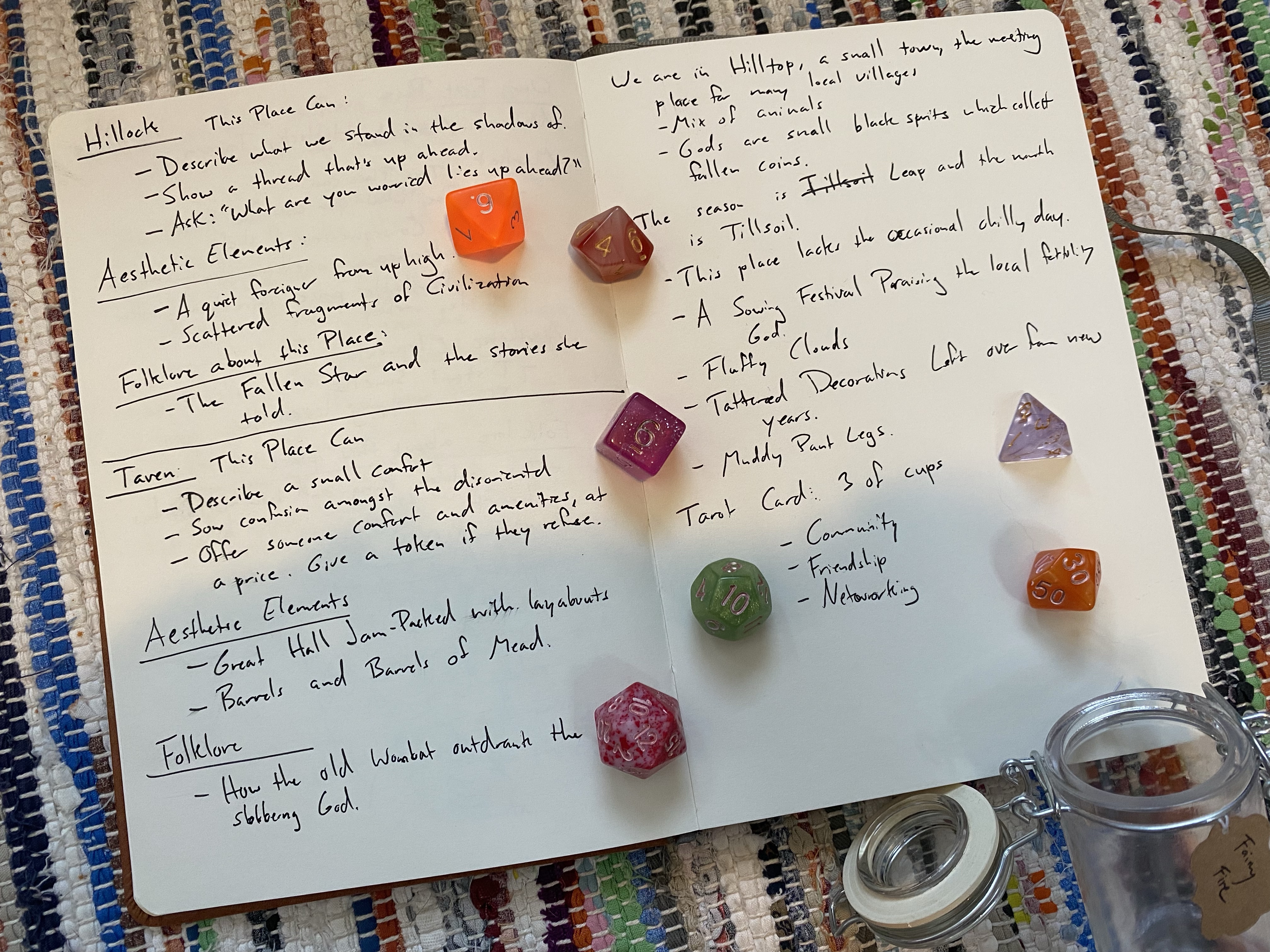 To do this, I’ll be using a table in the Wanderhome book and rolling a 6-sided die on three tables to get three “Natures.” Each of these will have some rules and it will help us understand our first place.
