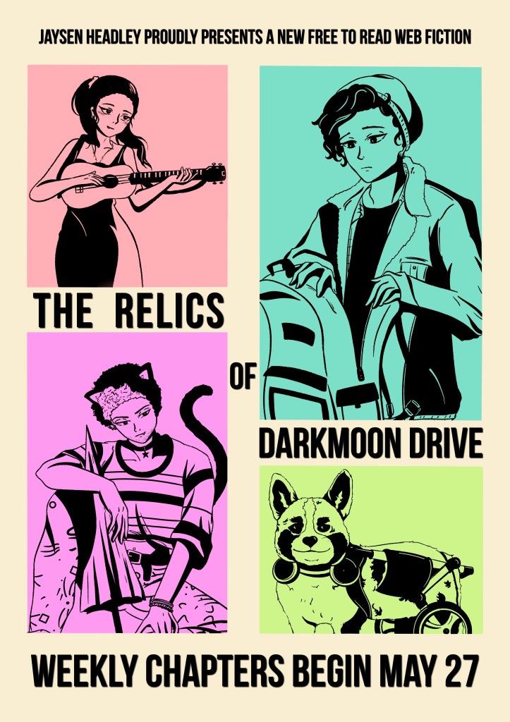 I just wanted to pop over here to let you all know that my new ongoing Web Fiction, The Relics of Darkmoon Drive, has begun posting chapters! The first three chapters are available now over at DarkmoonUnlocked.com!